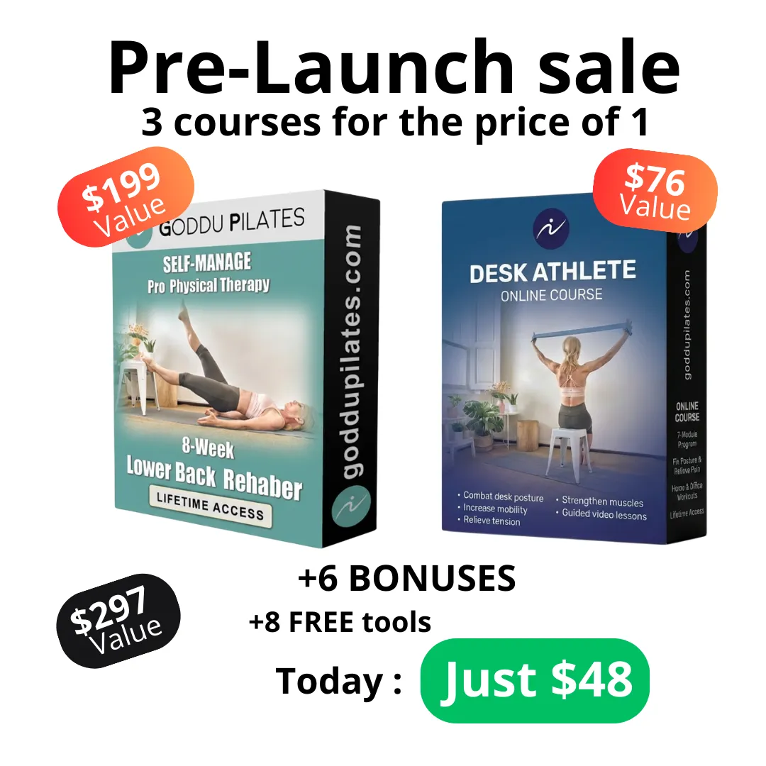 You spend 8+ hours a day sitting. This toolkit gives you 5 powerful "resets" you can do right at your desk in under 2 minutes to unlock your hips, decompress your spine, and restore athletic posture without leaving your workspace.