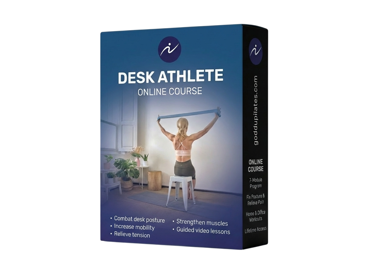 5x10-min daily resets to unwind tension, realign posture, and energize your body from spending long houre at the screen. No mat or change of clothes needed!